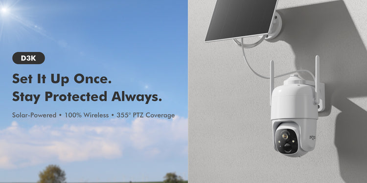360° PTZ 2K Wireless Battery Powered Spotlight Security Camera with Solar Panel Dzees D3K